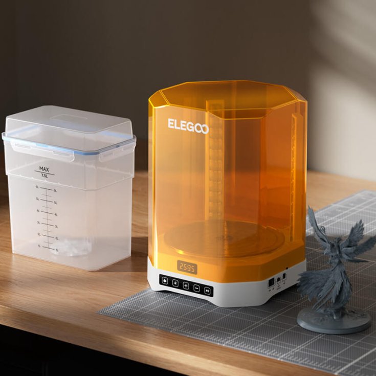 Это устройство поддерживает работу с большинством LCD, DLP и SLA 3D-принтеров, представленных на рынке, что делает его универсальным решением для постобработки. Mercury Plus V3.0, предназначенный специально для фотополимерных 3D-принтеров Elegoo, идеально подходит для легкой оптимизации рабочего процесса. Для принтеров серии Jupiter перед очисткой необходимо снять платформу для построения. При работе с другими моделями, необходимо посмотреть максимальный объем очистки и выбирать режим работы в соответствии с его значением.